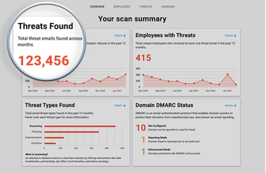 Holen Sie sich jetzt Ihren kostenlosen Scan und entdecken Sie die Bedrohungen, die von älteren Lösungen übersehen werden – einschließlich Mimecast. Es geht schnell, ist sicher und hat keine Auswirkungen auf Ihren E-Mail-Betrieb.