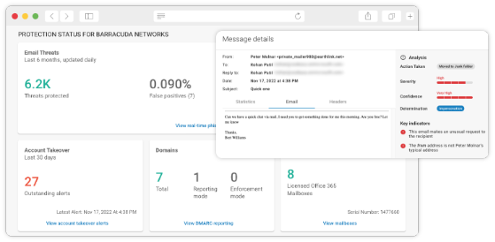 Barracuda setzt verhaltensorientierte KI ein, um interne E-Mail-Muster und Anmeldeanomalien zu überwachen, kompromittierte Konten zu erkennen und bösartige Nachrichten automatisch zu entfernen.